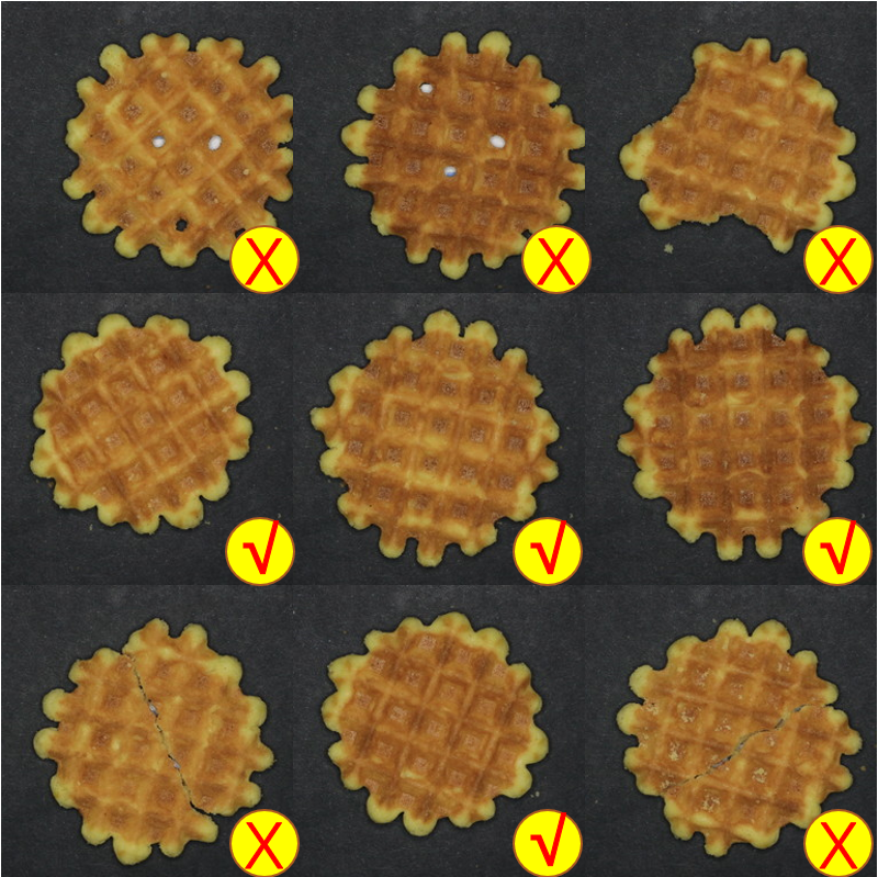 例如,如果流程要求将不良部件与优良部件分开,EasyClassify 将返回每个部件是优良还是不良,也会返回相应的概率。