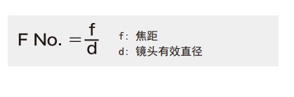 光阑指数(F)是影像亮度的一个表征。数值越小,亮度越高。通过焦距和镜头的有效直径之比可以求出光阑指数。
